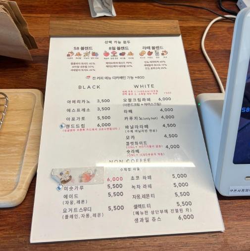 58mm커피로스터스 : 라떼 좋아하면 꼭 가봐야 할 곳. 주말 아침 10시 오픈하자마자 갔는데 사람 적당히 있어 편하게 즐길 수 있었다. 부부가 운영하시는 듯 친절하고, 1인 1메뉴 주문 필요. 뜨라떼·카푸치노·스콘 주문했는데 사장님이 직접 자리까지 가져다주셔서 기분 좋았음. 스콘은 따끈하게 바로 구워줘서 하나 더 추가할 정도로 맛있다. 가격도 매우 착하고 라떼·카푸치노 모두 진하고 부드러움. 시나몬 카푸는 특히 강추. 바깥자리도 있어 여유롭게 즐기기 좋다. 재방문 확정! ☕🧡