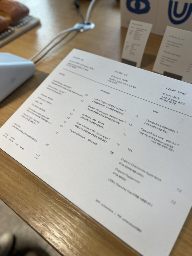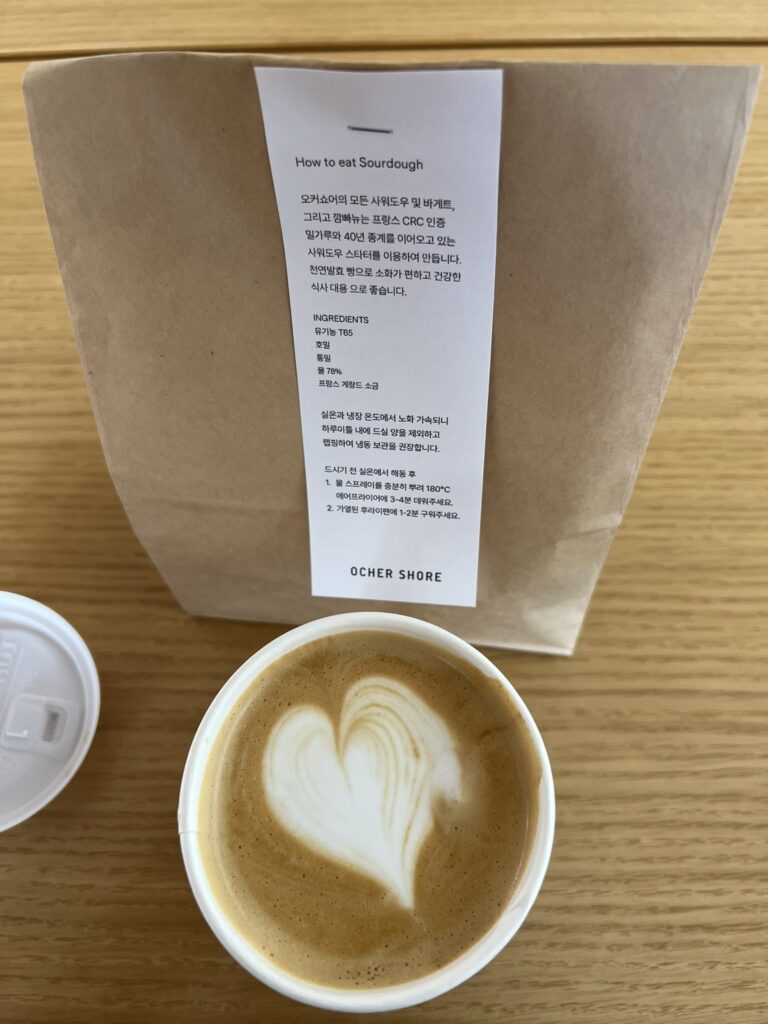 오커쇼어는 종로 경복궁역 인근에 위치한 베이커리 카페로, 매일 직접 구운 사워도우 빵과 로스팅한 커피를 즐길 수 있음.